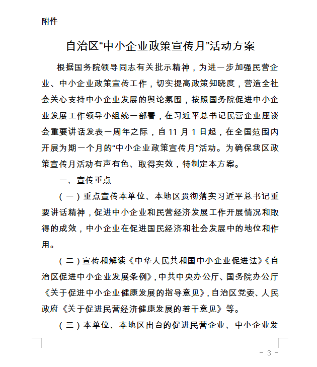 关于印发《自治区“中小企业政策宣传月”活动方案》的通知