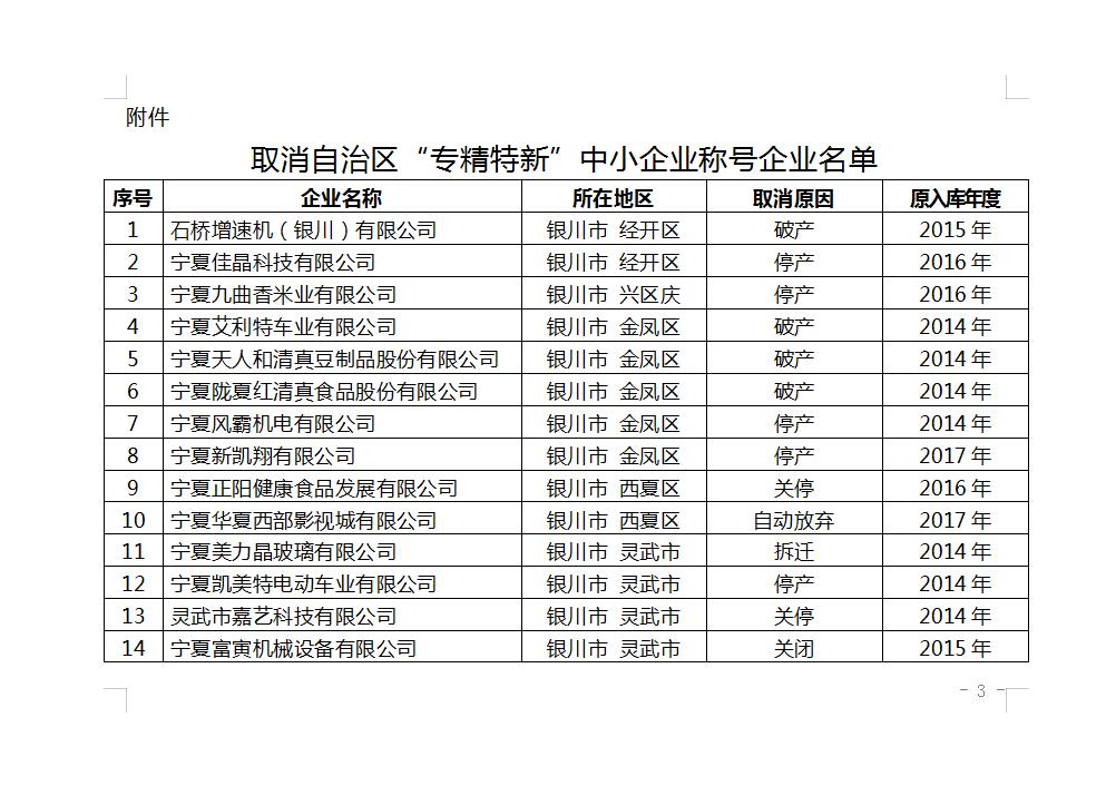 自治区工业和信息化厅关于公布2014年-2017年自治区“专精特新”中小企业复核结果的通知.doc