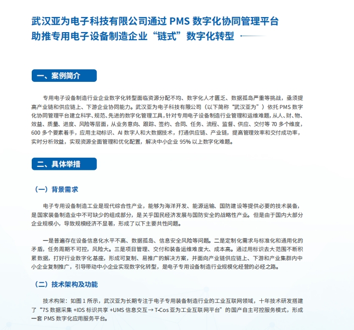 武汉亚为电子科技有限公司通过PMS数字化协同管理平台助推专用电子设备制造企业"链式"数字化转型