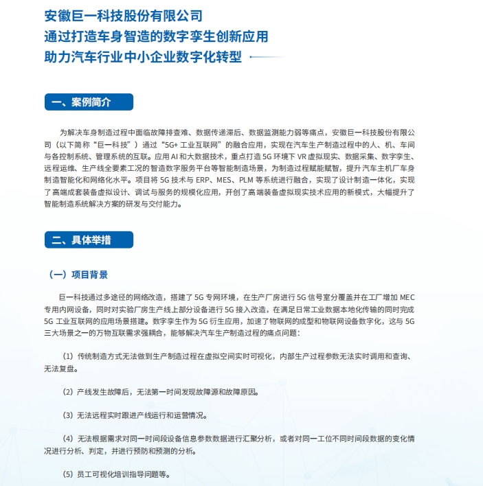 安徽巨一科技股份有限公司通过打造车身智造的数字孪生创新应用助力汽车行业中小企业数字化转型