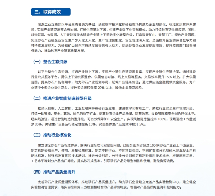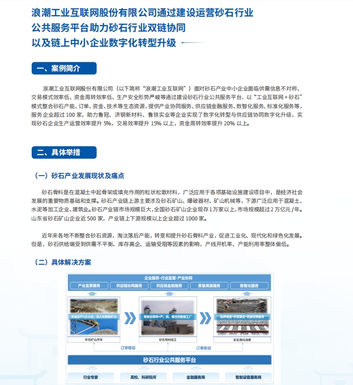 浪潮工业互联网股份有限公司通过建设运营砂石行业公共服务平台助力砂石行业双链协同以及链上中小企业数字化转型升级