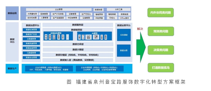 数字化改造前,福建省泉州登宝路服饰有限公司生产效率较低,生产方式精细化、柔性化、智能化水平较差。为加强各系统间的协同、提升企业生产经营效能,福建省泉州登宝路服饰有限公司构建集吊挂系统数据、ERP系统、自动化产线MES系统为一体的5G全连接工厂。一是将ERP、MES、GST三大系统集成于云供应链平台,通过大数据存储、云计算、云服务、5G、人工智能等技术实现服装及物流运输等领域的数据采集、大数据计算、生产决策等。二是打通采购、设计、生产、销售、管理等环节的信息通道,实现供应链管理、营销管理、计划调度、过程实时监测、在线诊断、实时监控、安全监测、物料保障等信息化管理。三是建立全生命周期质量管控、需求敏捷感知和产销用协同的服装离散制造和大规模个性化生产智能制造工厂。四是将服装缝制智能吊挂流水线、平板、智能服装整烫流水线、挂装分拣流水线、自动打包设备等各生产环节的智能设备连接成为一个有机整体,各生产环节通过这些设备进行智能输送、调度,实现拉布、裁剪、分包、编码、配片、送料、上架、缝制、后整、分拣、封箱、入库等生产全过程自动化流转。转型后,企业生产效率提高27.5%,产能提升1.6倍,能源使用量降低10%,产品不良率降至0.3%,产品实现100%可追溯。