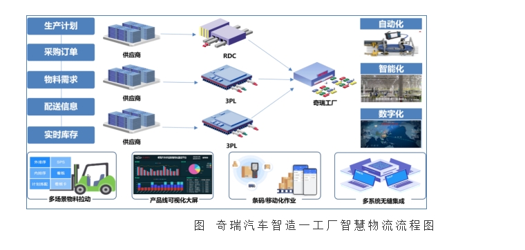 奇瑞汽车股份有限公司智造一工厂供应链环节包含本地多个配送节点,企业供应链服务封闭,企业间存在沟通障碍,生产计划与物料计划不协同等问题,导致产生大量呆滞库存,库存资金占用率高。为应对以上问题,奇瑞汽车旗下数字科技公司安徽海行云物联科技有限公司研发了LES物流拉动管理平台,推动智造一工厂与上游供应商高效协同。一是构建线上一体化协同平台,建立统一的计划、物流和主数据管理体系,汇聚物流数据、道口数据、物料数据等,为物料拉动提供数据支撑,并在统一的计划体系指导下安排业务执行,以提升供应链计划的协同作业效率。二是打造自动化、智能化配送调度体系,针对不同物料地点和特性,支持多样化配送和调度场景,并结合物料的厂内拣配类型、厂外供货类型进行优化配置。三是集成信息化平台,实现全业务过程控制。平台通过对接MES实现过点记录,支持下游供应商实时获取上游LES系统产生的需求单据,满足供应商→集货中心→物流中心→生产线无缝衔接,推动信息流畅通与过程透明。平台应用后,一是推动智造一工厂整体效率提升,实现存货周转率提升25%,促进企业整体管理体系提升。二是通过产业链协同实现增效,平台已实现引导989家供应商加入实现协同制造,整体配送效率提升48%。