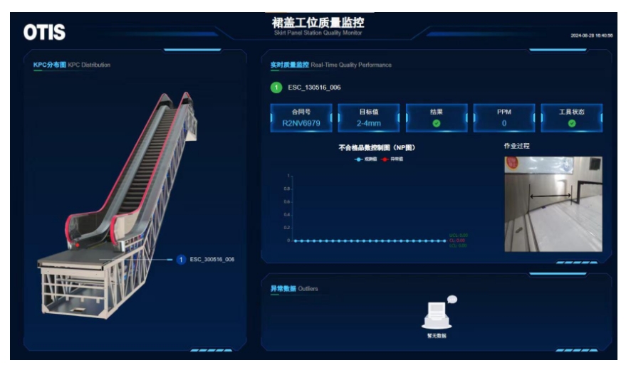 面对扶梯从供应商原材料到车间生产再到工地成品安装的过程缺乏系统的分析和数据管理,质量相关数据无法追溯的问题。奥的斯电梯制造有限公司以物联网和大数据技术为支撑,实现生产过程全方位、多形式监控。一是将仿真模拟技术融入扶梯调试、终检等环节,提升了质量控制的精准性。二是推动自动识别与定位技术、物联网技术和大数据分析技术相互融合,构筑智能质量监测网络,实现实时质量管理与质量提升。三是推动智能工具(联网扭力枪、智能测量装置等)、扶梯智能检测平台、质量数字化管理系统和静音房智能终检平台无缝连接,实现质量管控的数字化转型。奥的斯电梯制造有限公司通过数字化转型,关键设备数控化率和联网率达到100%,生产效率提升了62.5%;在质量方面,产品不良率降至零,质量损失率下降20%,质量问题追溯能力大幅增强。